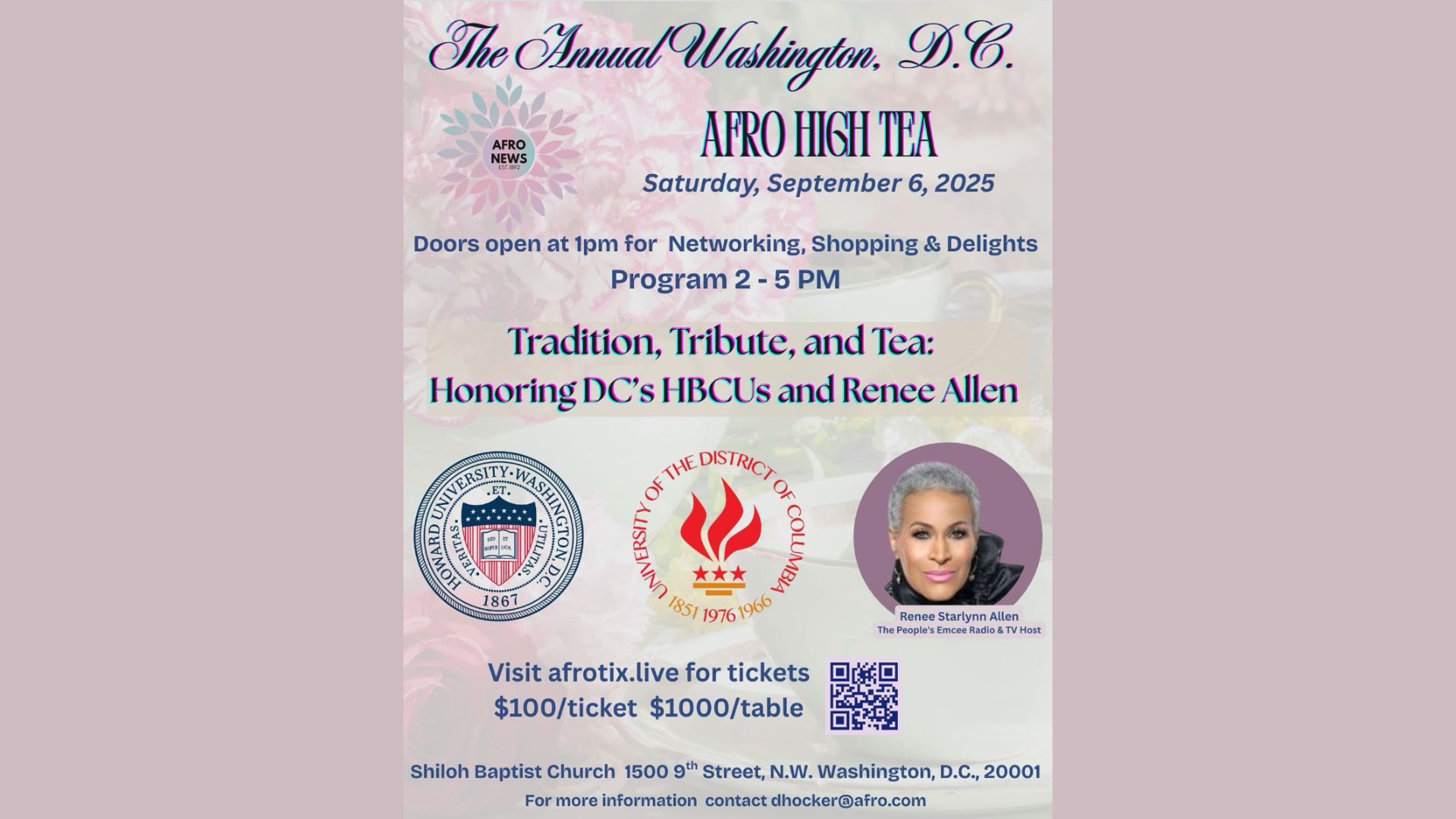 The AFRO will host their D.C. High Tea on Sept. 6 at Shiloh Baptist Church, located at 1500 9th Street NW in the nation’s capital.