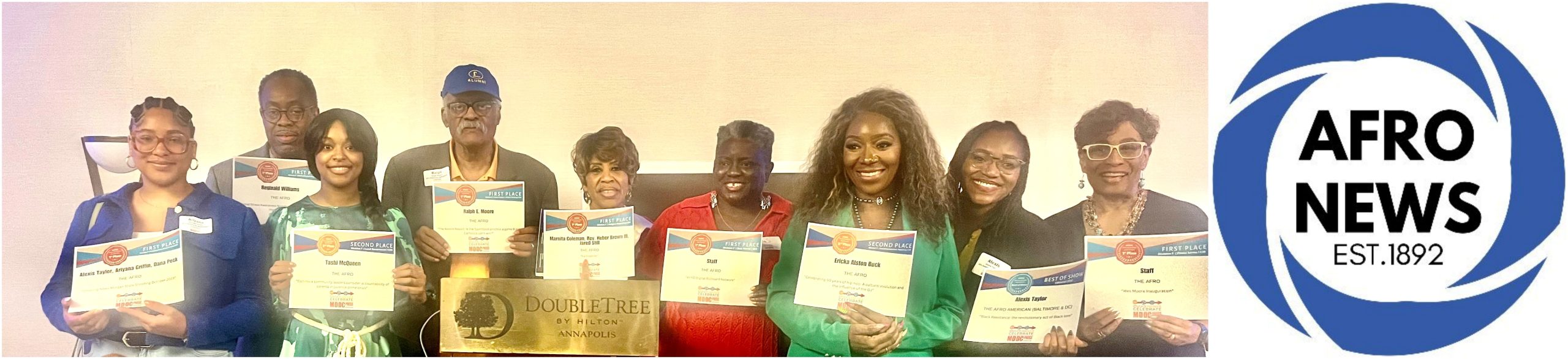 The AFRO team is home to more than 15 awards from the MDDC Press Association Editorial and Advertising Contest. Shown here: Ariyana Grifin (left); Reginald Williams; Tashi McQueen; Ralph Moore; Marnita Coleman; Mylika Scatliffe; Erica Alston Buck; Alexis Taylor and AFRO Publisher and CEO, Dr. Frances “Toni” Draper.