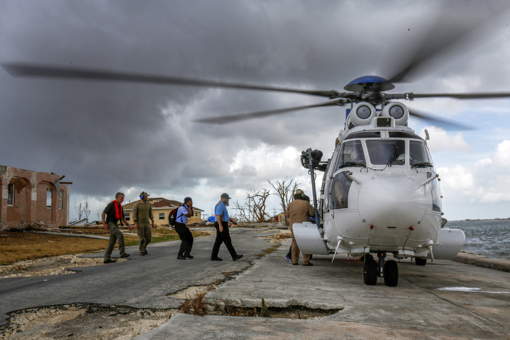 In this Sept. 16, 2019 photo, a team sent by the Bahamian government to check on the conditions of clinics, leaves from inspecting a destroyed clinic in McLean’s Town Cay, Grand Bahama Island, Bahamas. Bahamians are still struggling weeks after Hurricane Dorian destroyed much of the infrastructure, including more than 13,000 homes. (Chris Day/University of Florida via AP)
