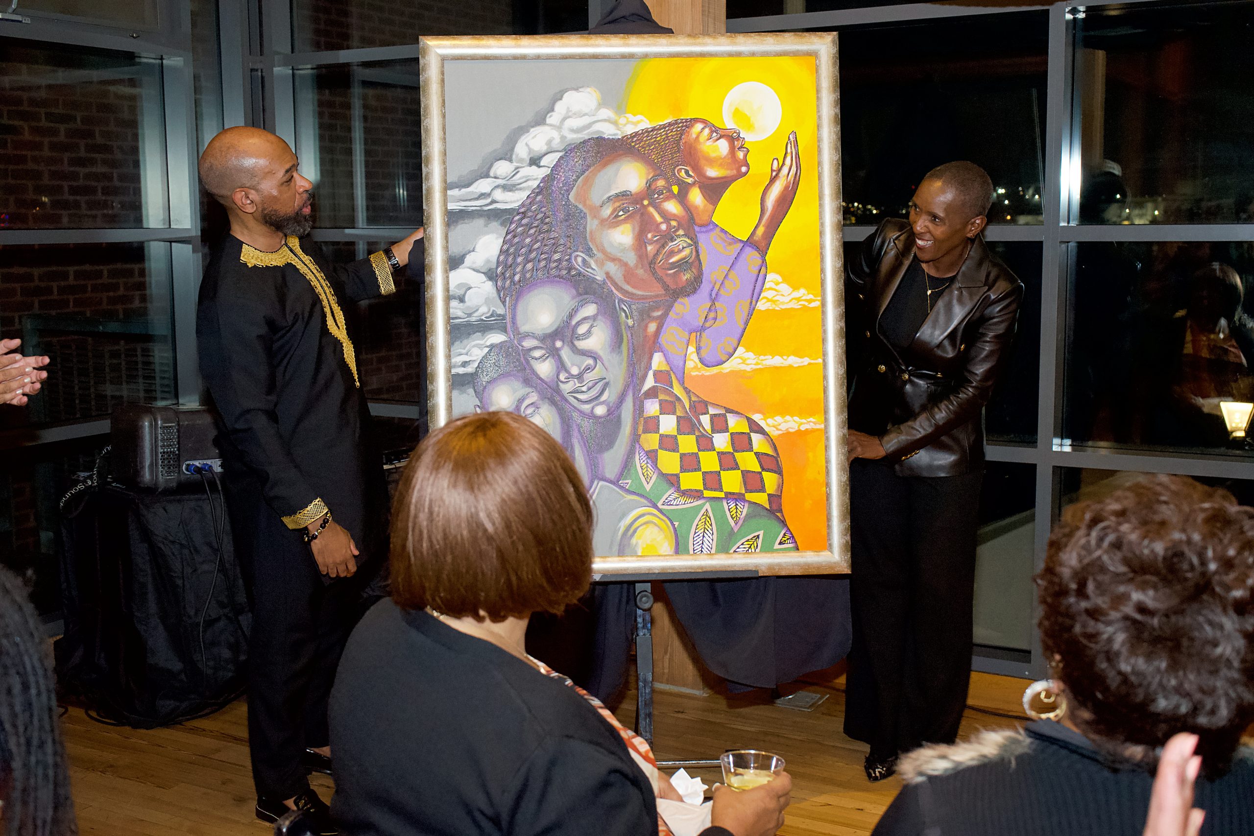 Dr. Jonathan Shepherd, president of BMHA’s board of directors and Executive Director Andrea Brown unveils the work of Larry “Poncho” Brown.