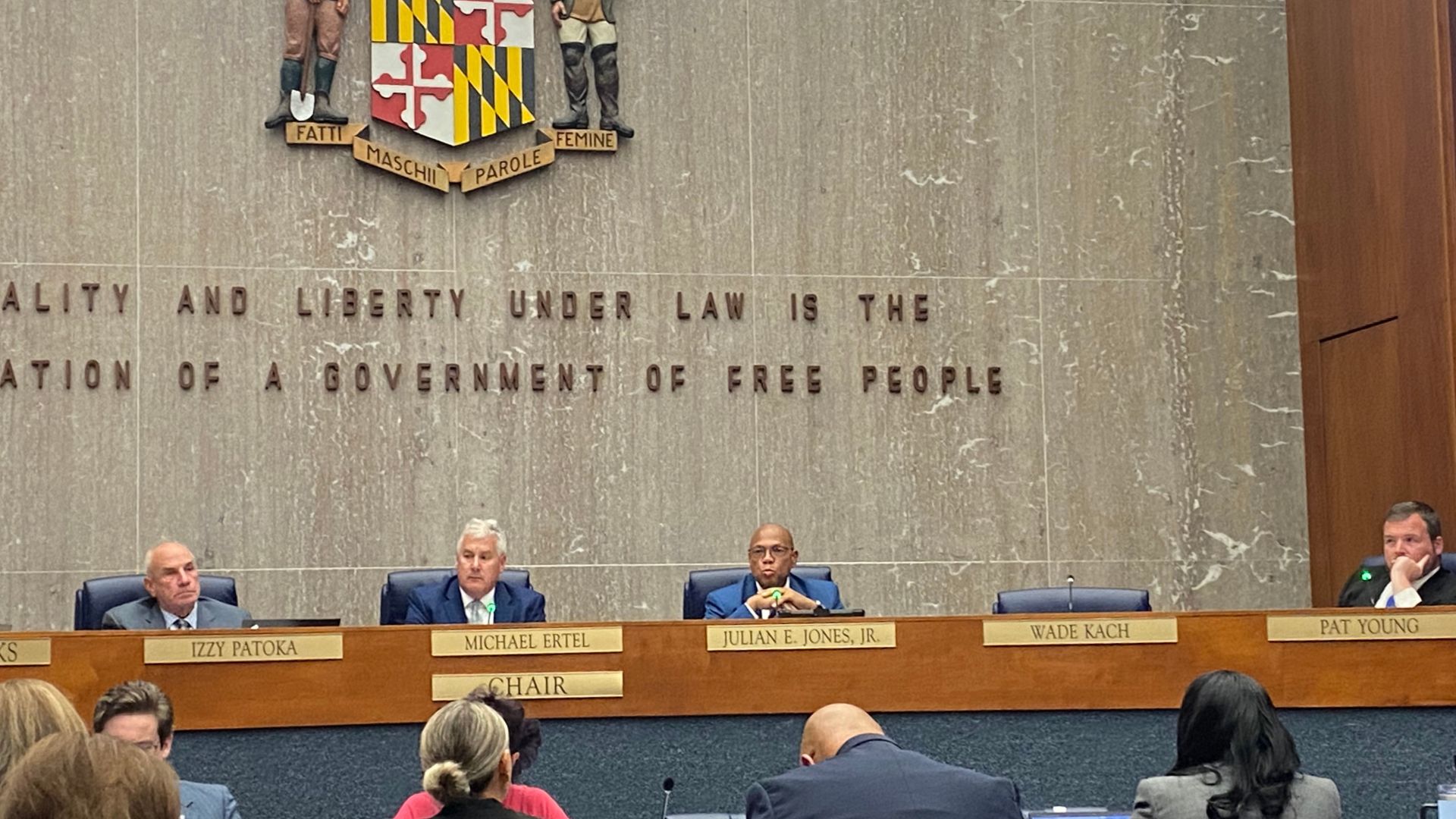 Members of the Baltimore County Council discuss the redistricting map during their Sept. 15 legislative session prior to approving the amended plan expanding the council to nine districts. Left to right, Councilman Israel “Izzy” Patoka (D-District 2), Council Chair Michael P. Ertel (D-District 6), Councilman Julian E. Jones (D-District 4) and Councilman Pat Young’s (D-District 1).