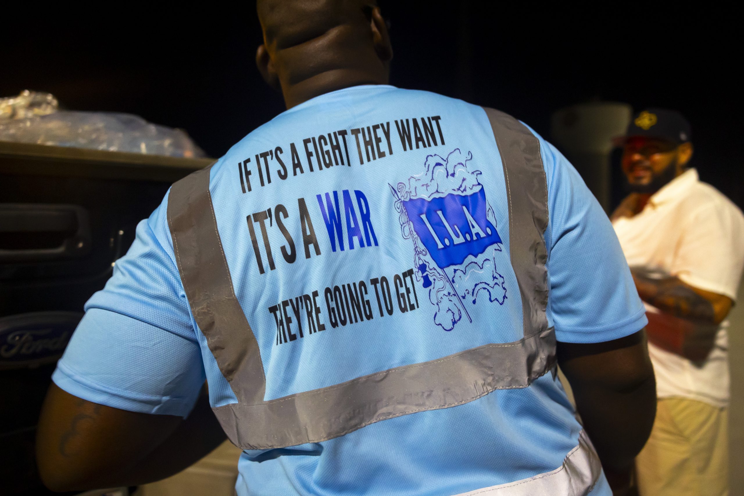 Port Strike Longshoremen strike at midnight at Bayport Terminal on Tuesday, Oct. 1, 2024, in Houston. (AP Photo/Annie Mulligan)