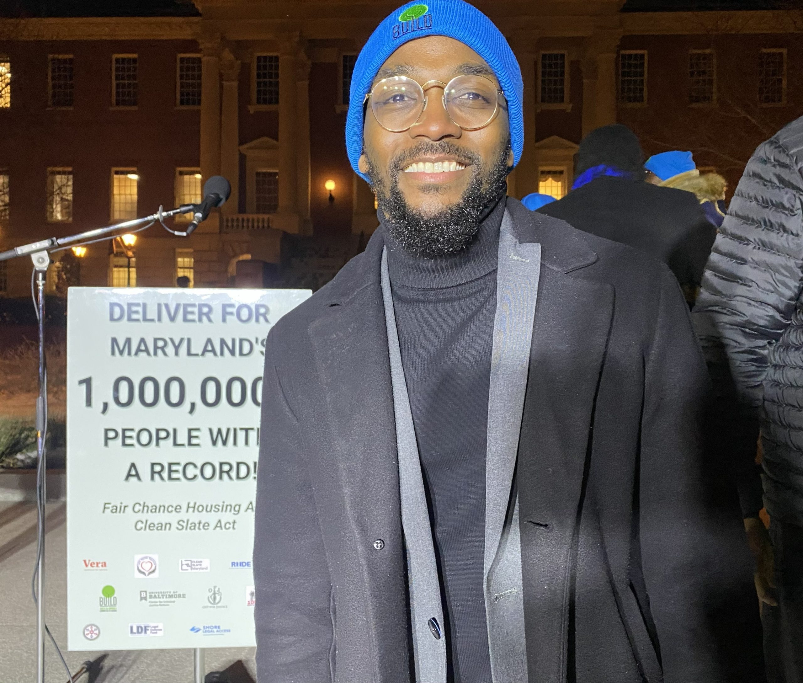 Shyheim Washington, a leader with Baltimoreans United in Leadership Development (BUILD), speaks during a rally outside the Maryland State House in Annapolis advocating for the Fair Chance Housing Act and Clean Slate Act. (AFRO Photo/Tashi McQueen)