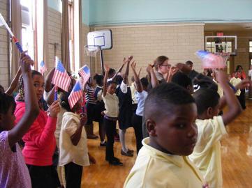 AFRO Photo-Students at Ketcham ES in the District of Columbia create a circle-of-peace to commemorate Rodney Dickens, student and his teacher, James Debeauneure, victims of the Sept. 11, 2001 terrorist attacks. Students made a peace pledge, lit a candle and performed a sand ceremony.