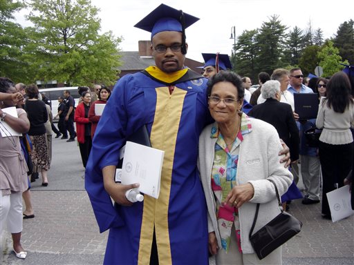 In this photo taken on June 19, 2007, released by Jennifer Young, her son Jermaine McBean poses with his grandmother Sylvia Mc Donald at McBean’s graduation from Pace University, in New York. McBean was shot by a Broward County Sheriff Deputy after several people called 911 to report a suspicious person carrying a gun down a busy street. McBean was carrying an air rifle when he was shot while entering an apartment complex, where he lived in Florida. (Jennifer Young via AP)
