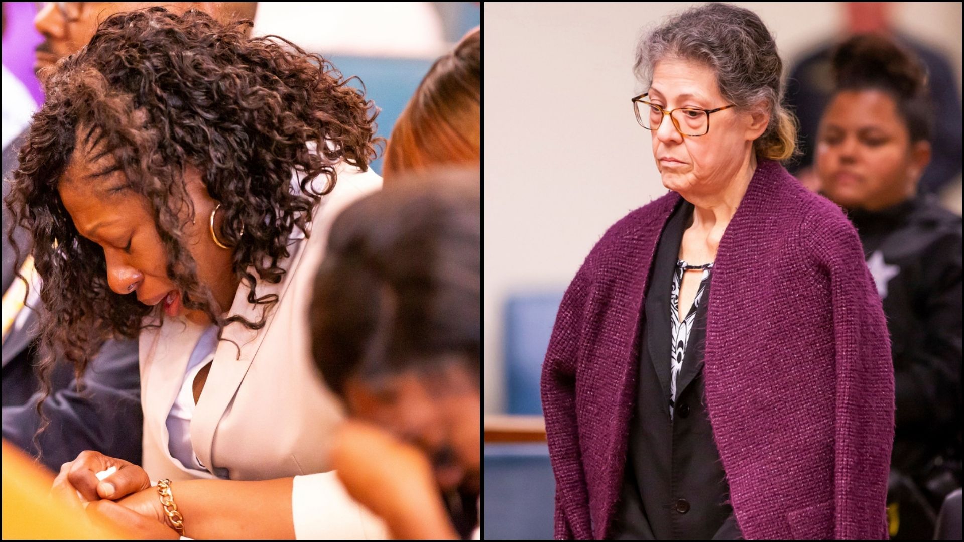 Pamela Dias, center, Ajike “A.J.” Owens’ mother, breaks down in tears after a jury found Susan Lorincz guilty of manslaughter in the shooting death of her daughter, Aug. 16, 2024, in Ocala, Fla. (Doug Engle/Ocala Star-Banner via AP, Pool)