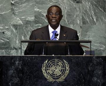 AP Photo/Richard Drew-In this file photo taken on Friday, Sept. 23, 2011, President of Ghana, John Evans Atta Mills, waits to address the 66th session of the United Nations General Assembly. State-run television in Ghana is announcing on Tuesday, July 24, 2012, that President John Atta Mills has died at age 68.