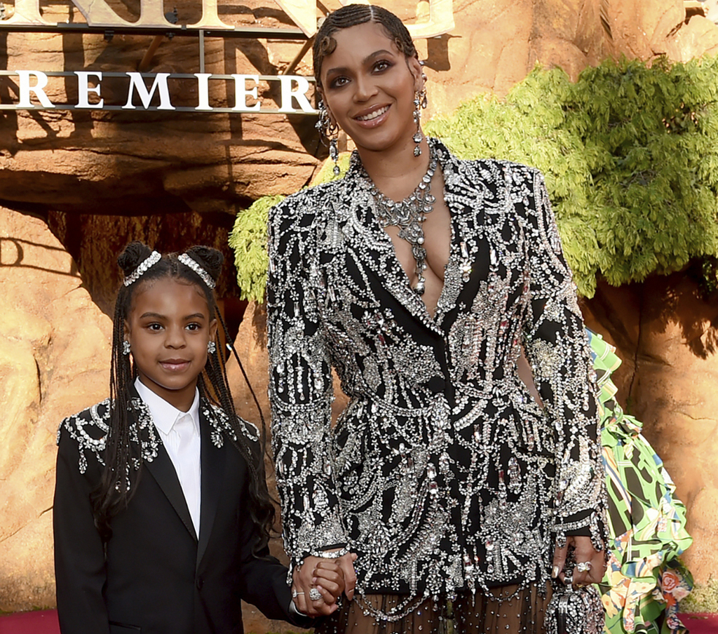 In this July 9, 2019 file photo, Beyonce, right, and her daughter Blue Ivy Carter arrive at the world premiere of “The Lion King” at the Dolby Theatre in Los Angeles. At just 7, Blue Ivy Carter is an award-winning songwriter. Jay-Z and Beyoncé’s daughter won the Ashford & Simpson Songwriter’s Award at the Soul Train Awards on Sunday, Nov. 17 for co-writing her mom’s hit “Brown Skin Girl,” a song celebrating dark- and brown-skinned women. Ivy gives a vocal performance that opens and closes the song, which also features Wizkid and Saint Jhn. (Photo by Chris Pizzello/Invision/AP, File)