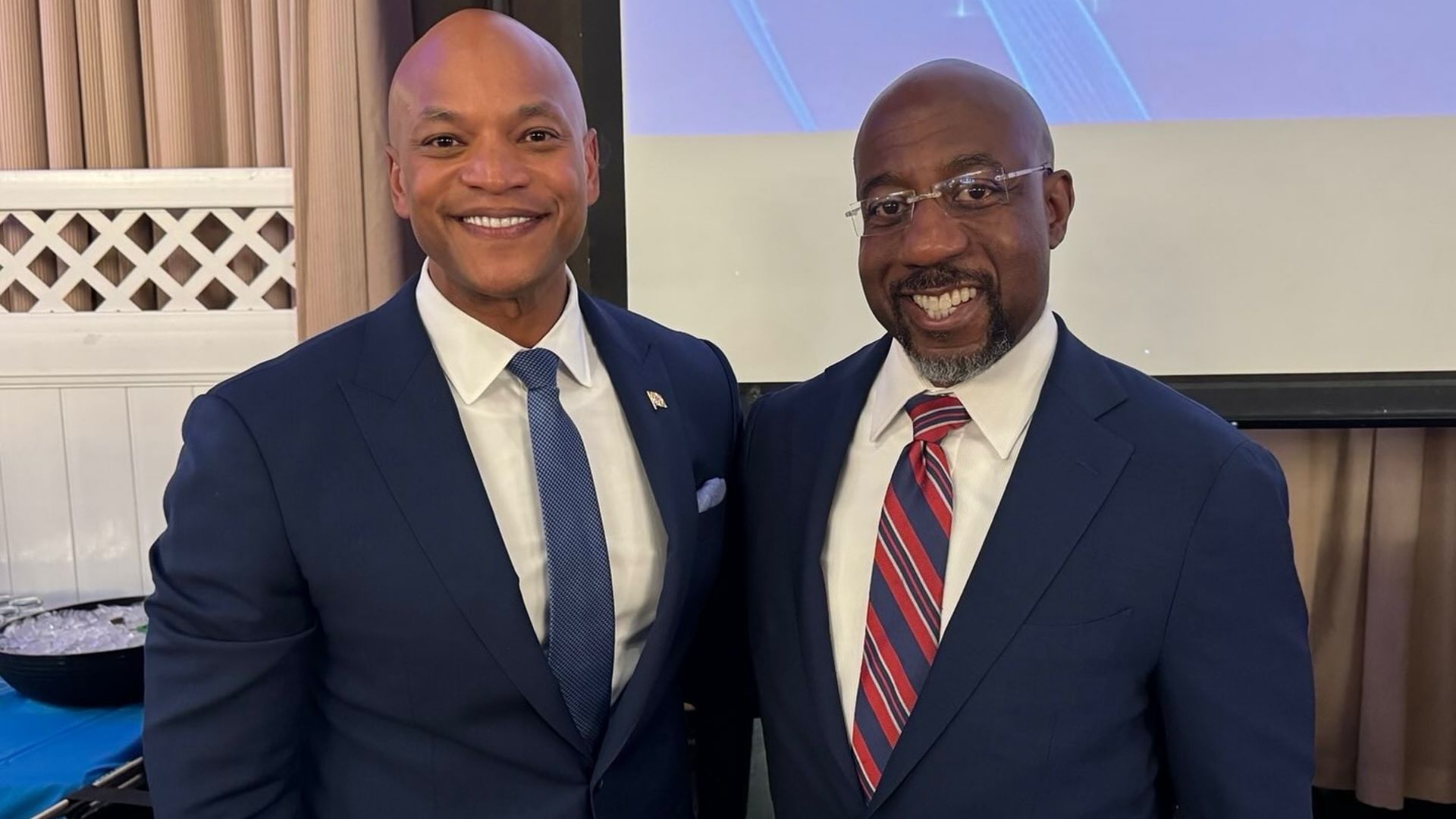 Maryland Gov. Wes Moore (D) and U.S. Sen. Raphael Warnock (D-Ga.) speak at the 2025 Maryland Democratic Party Gala, calling for unified action to address national concerns over the next three years of the 47th president’s term.
