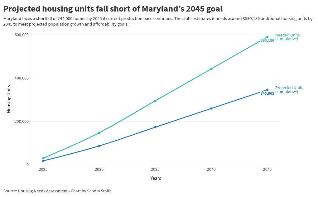 Maryland-Projected-housing-units-fall-short Projected housing units fall short of Maryland’s 2045 goal. Credit: Courtesy of Capital News Service