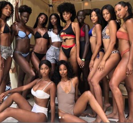 Model Joia Talbott (center, black and red swimsuit) organized a photo shoot of beautiful women of color after being told that “Afros were a no-no” at an audition. (Instagram Photo)