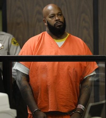 Death Row Records founder Marion “Suge” Knight appears in a courtroom during his arraignment at the Compton courthouse, Tuesday, Feb. 3, 2015, in Compton, Calif. Knight has pleaded not guilty to murder, attempted murder and other charges filed after he struck two men with his truck last week. (AP Photo/Paul Buck, Pool)