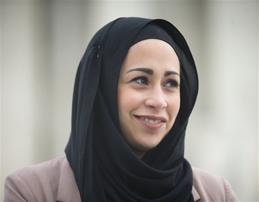 Samantha Elauf stands outside the Supreme Court in Washington, Wednesday, Feb. 25, 2015. The Supreme Court is indicating it will side with a Muslim woman who didn’t get hired by clothing retailer Abercrombie & Fitch because she wore a black headscarf that conflicted with the company’s dress code to her job interview. Liberal and conservative justices aggressively questioned the company’s lawyer during arguments at the high court Wednesday in a case that deals with when an employer must take steps to accommodate the religious beliefs of a job applicant or worker. (AP Photo/Pablo Martinez Monsivais)
