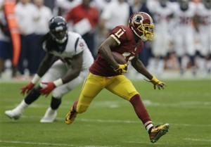 Washington Redskins wide receiver DeSean Jackson (11) runs with the ball during the second quarter of an NFL football game Sunday, Sept. 7, 2014, in Houston. (AP Photo/David J. Phillip)