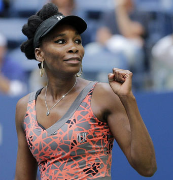 Venus Williams, of the United States, reacts after beating Maria Sakkari, of Greece, during the third round of the U.S. Open tennis tournament, Friday, Sept. 1, 2017, in New York. (AP Photo/Seth Wenig)