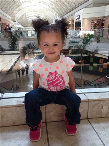 This undated family photo provided by Jennifer Cramblett shows her daughter, Payton. Cramblett and her partner, Amanda Zinkon, are suing Midwest Sperm Bank after she became pregnant with sperm donated by a black man instead of a white man, as they had intended. Cramblett was pregnant with Payton, now 2-years-old, when the mistake was discovered. (AP Photo/Courtesy of Jennifer Cramblett)