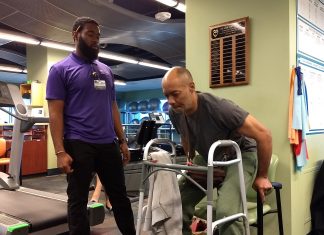 He’s doing resistance training at MedStar Good Samaritan’s gymnasium.